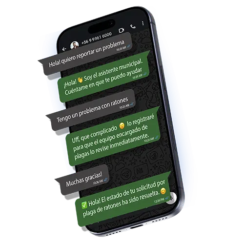 Atención inteligente por Whatsapp. Gestiona problemas y comunica avances.